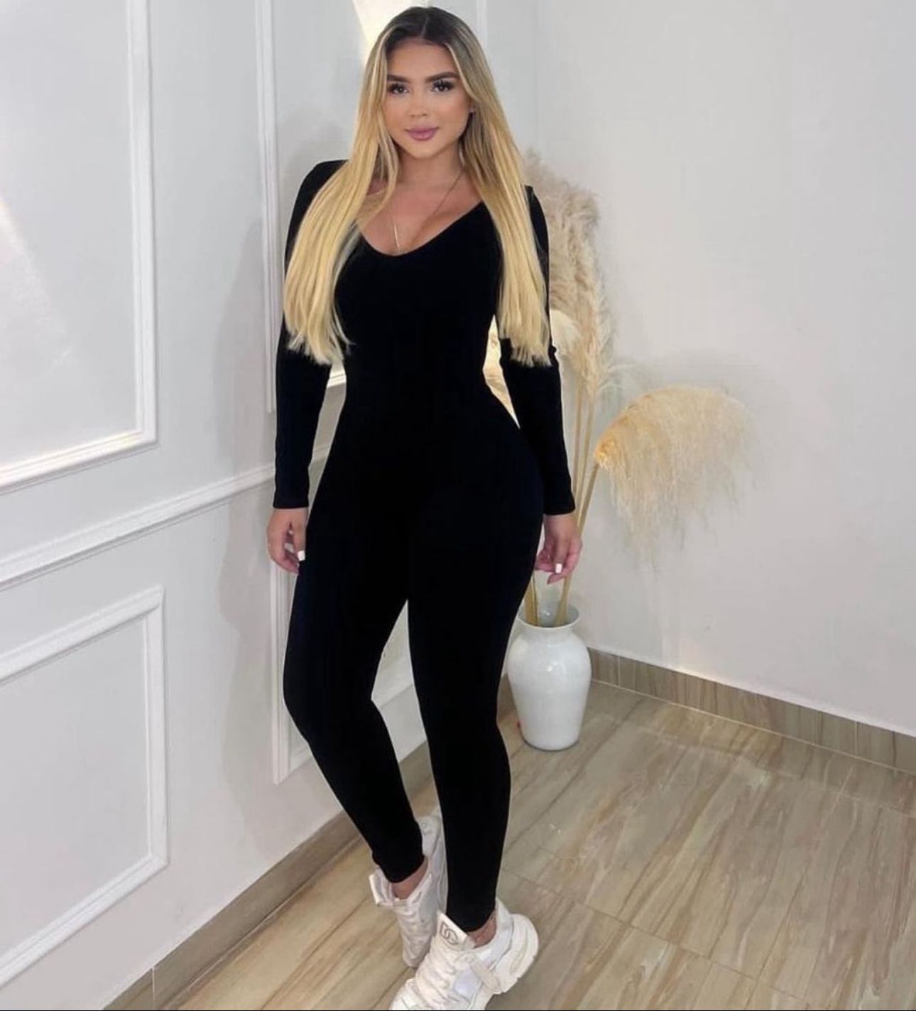 ENTERIZO LARGO MANGA LARGA CUELLLO EN V RIB